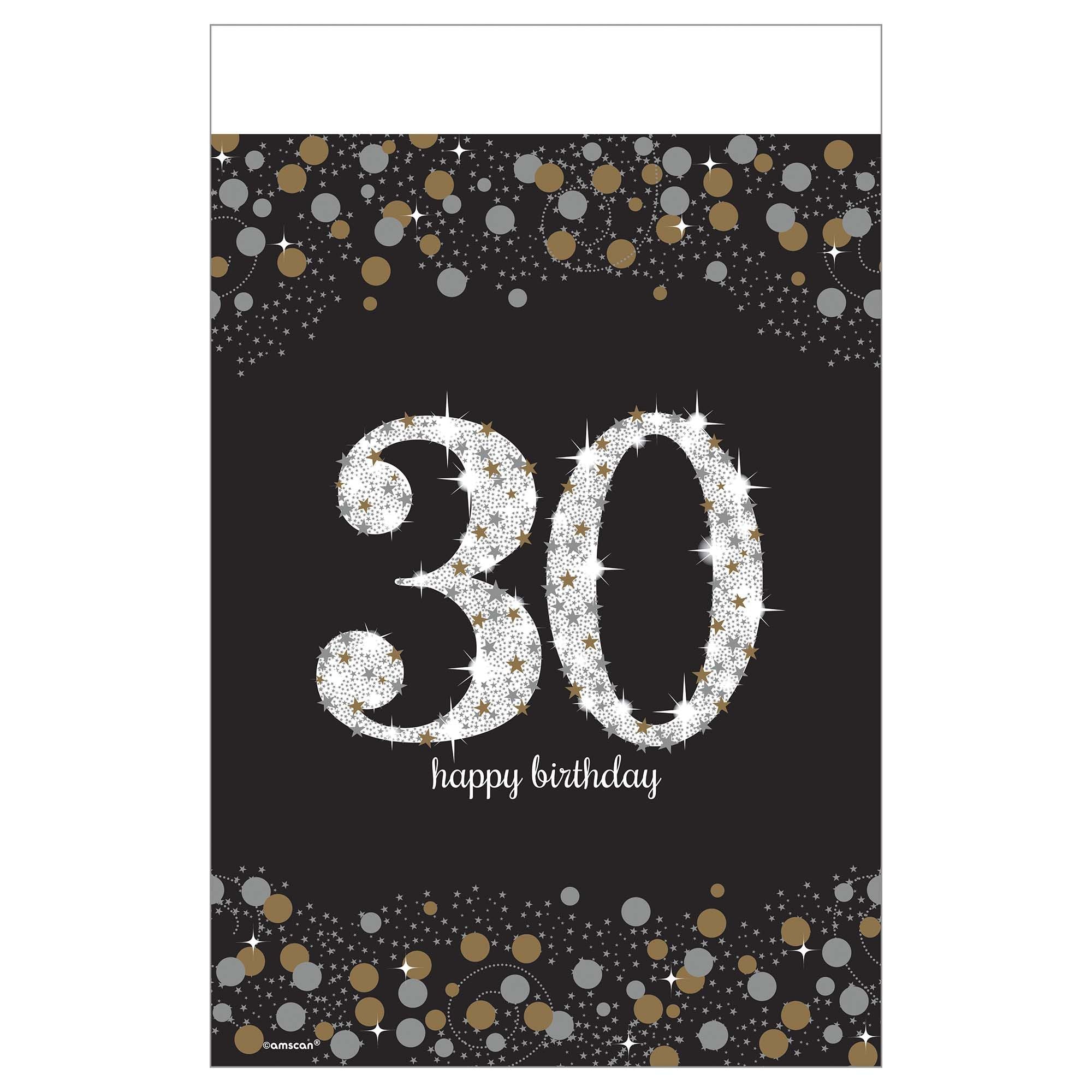 Transform your party table into a dazzling centerpiece with this Sparkling Celebration 30 Plastic Table Cover! Measuring a generous 54" x 102", it's the perfect size for standard banquet and dining tables. The shimmering design adds instant festive flair to any celebration, from milestone birthdays to New Year's Eve bashes. Made from durable plastic, it's easy to clean up after the party winds down—just wipe and toss. Protect your table while keeping the fun and sparkle front and center!