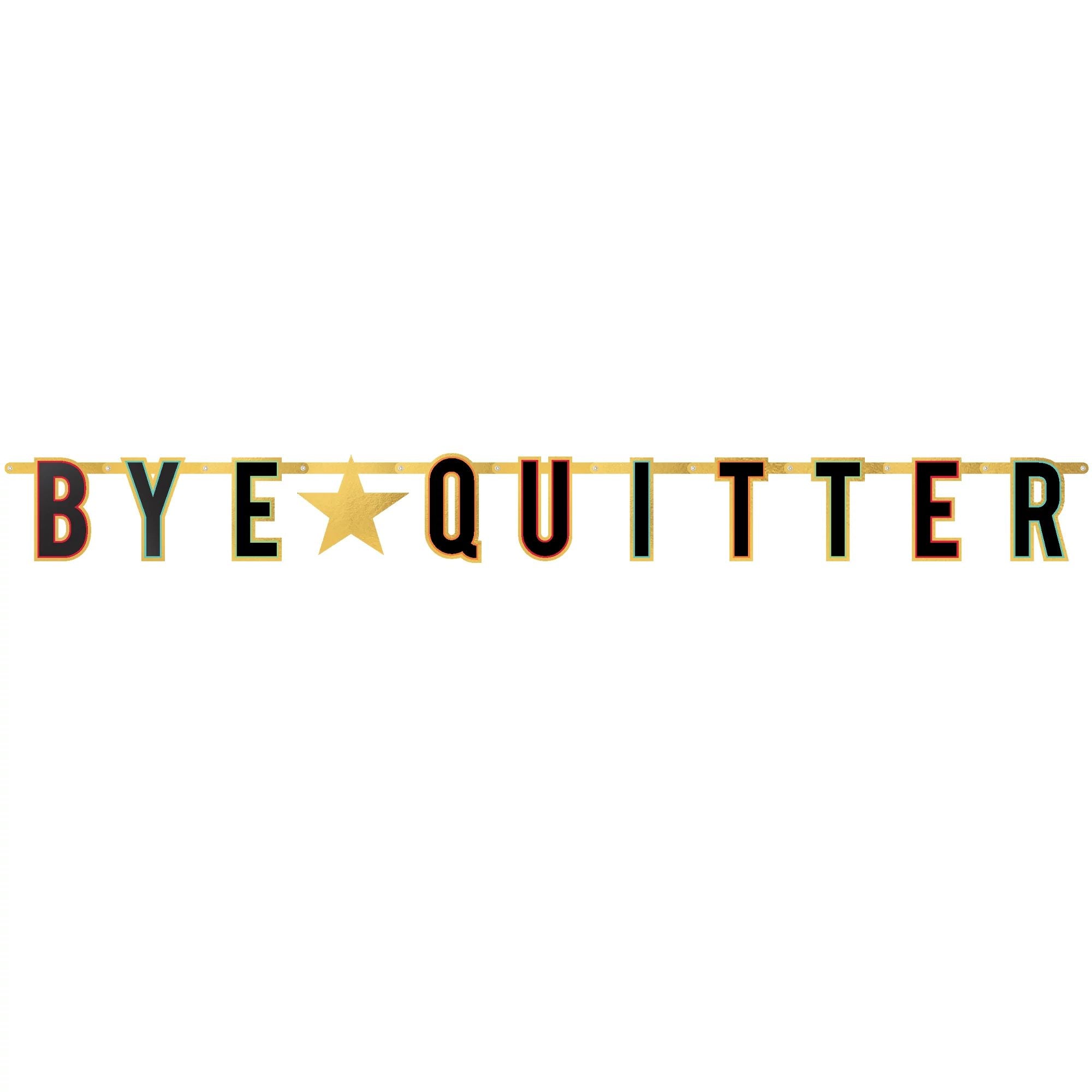 Celebrate the end of an era with this cheeky "Bye Quitter" letter banner! Measuring 6.5" high and stretching 68.5" long, this playful decoration is perfect for retirement parties, going-away celebrations, or anyone ready to close the chapter on their work life. The bold lettering makes a humorous statement that'll get laughs from guests. Hang it across a wall, doorway, or party space for maximum impact. A fun way to toast to new adventures ahead!