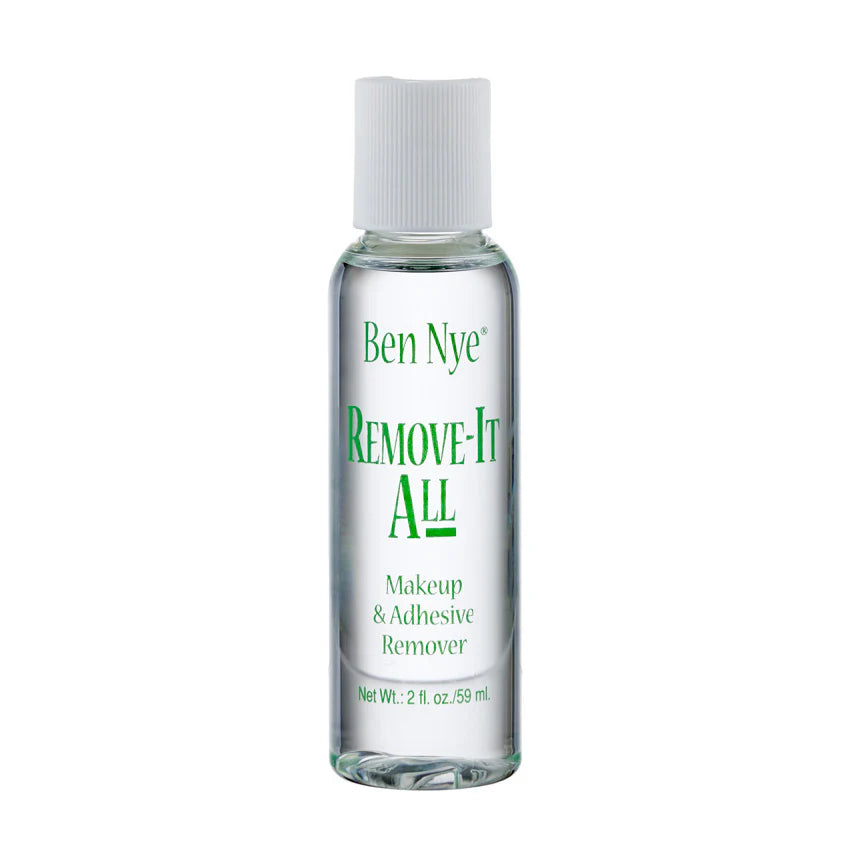 Ben Nye's Remove-It All is a powerful makeup remover designed to break down heavy creme makeup, Spirit Gum, and medical or prosthetic adhesives with ease. This gentle, fragrance-free formula ensures effortless removal without harsh chemicals or irritation. Each 2oz bottle delivers 15-50 applications, making it an economical choice for makeup artists, performers, and anyone working with professional-grade adhesives. Perfect for daily use or professional settings where reliable, skin-friendly removal is essential.