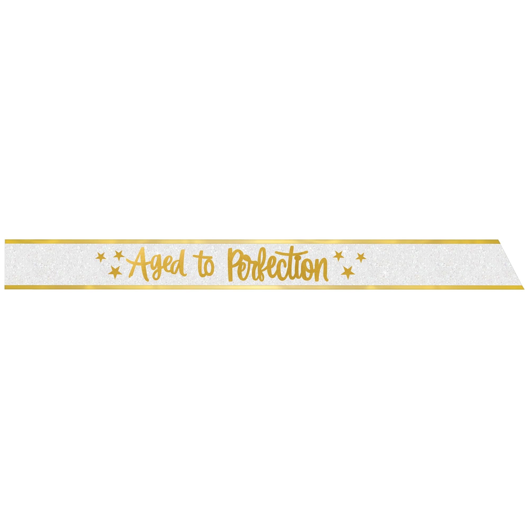 Celebrate reaching the big milestone with our Golden Age Sash! This stunning gold and white beauty is the ultimate accessory for marking those unforgettable birthday moments. Perfect for photos, parties, and all the festivities in between, it transforms any celebration into something extra special. Wear it proudly as you toast to another year of adventures, wisdom, and fabulous living. Because turning a certain age deserves to be celebrated in style—with a sash that's as golden as the memories you're making!