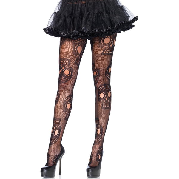 Feel vibrant and stylish with these Sugar Skull Fishnet Tights. Crafted with 93% Nylon and 7% Spandex material, the pantyhose provide a comfortable, stretchy fit. The bold, daring design of these fishnet pantyhose makes them perfect for any special occasion including Day of the Dead or Halloween. Available in two size options.