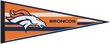 Display your Broncos pride with this classic felt pennant! Measuring 12 by 30 inches, it's the perfect size to hang in your game room, dorm, or man cave. The vibrant Denver Broncos design brings team spirit to any space, whether you're a longtime fan or just getting into the action. Ideal for game day decorating or as a gift for the Broncos enthusiast in your life. Go Orange and Blue!