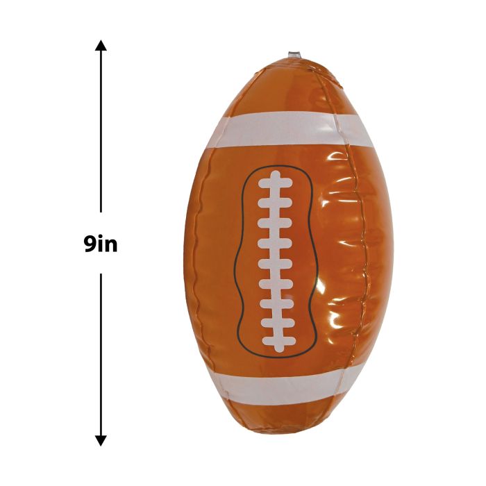 Score big with this playful 9" inflatable football! Perfect for backyard games, pool parties, or beach days, it brings classic gridiron fun to any gathering. Lightweight and easy to toss around, this single piece is ideal for kids and adults who want to keep the action going without the commitment of a regulation ball. Whether you're practicing your spiral or just goofing around, this bouncy buddy delivers touchdown-worthy entertainment wherever the fun takes you!
