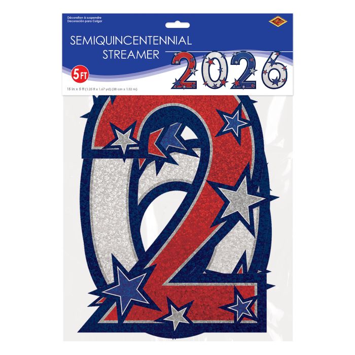 Celebrate in style with this eye-catching 2026 Red, White, and Blue banner! Featuring a dazzling glitter print that catches the light beautifully, this patriotic decoration brings festive flair to any space. Measuring 15" x 5', it's the perfect size for making a bold statement at parties, parades, or patriotic gatherings. Quick assembly required. Transform your venue into a red, white, and blue wonderland that'll have everyone talking!