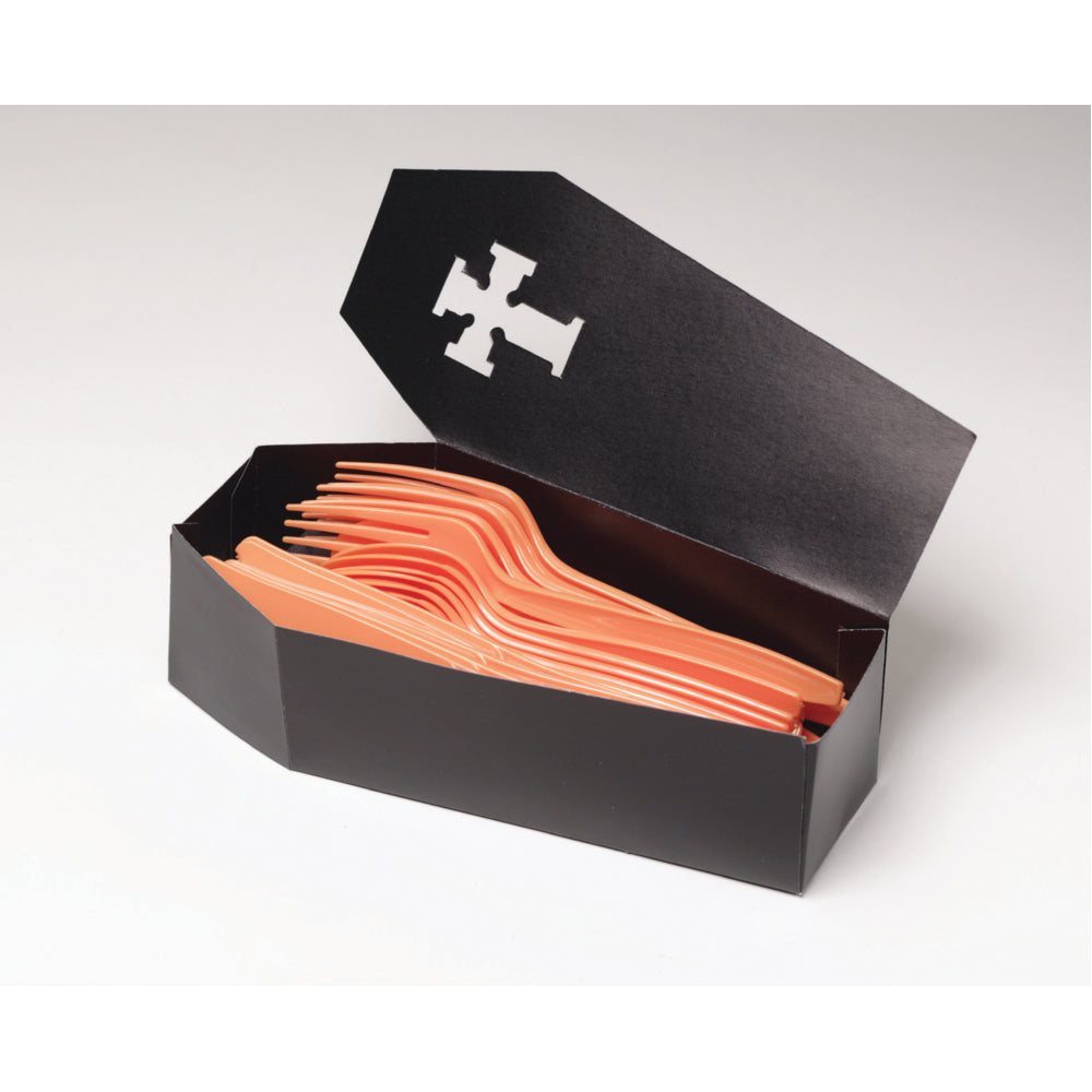 Keep your silverware organized or use these coffin-shaped paper caddies as spooky party favor holders. Measuring 3 inches by 7.5 inches, this 3-pack adds a fun, eerie touch to your Halloween table setting while being easy to use and dispose of after the party.