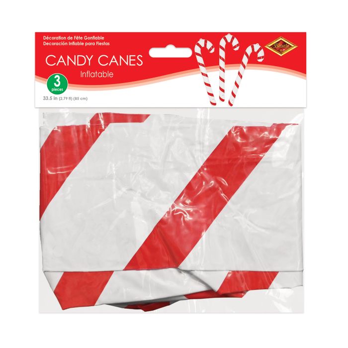 Add festive cheer to your holiday décor with these jumbo inflatable candy canes! Standing 33½ inches tall, each vibrant striped design brings instant Christmas spirit to any space—indoors or out. This convenient 3-pack gives you plenty of options to line your walkway, decorate your yard, or fill your storefront with sweet seasonal fun. Perfect for creating an eye-catching holiday display that'll have everyone smiling!
