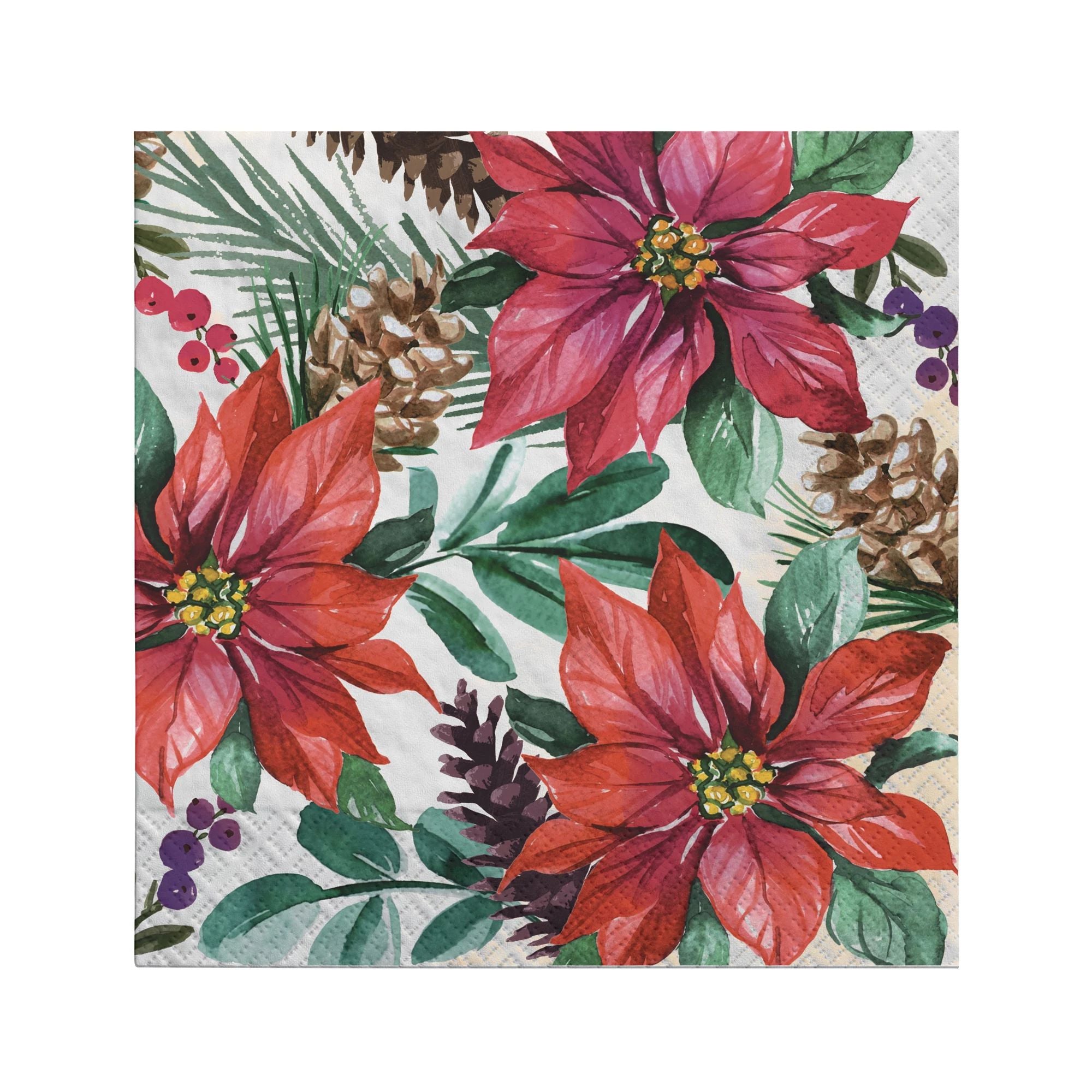 Deck the halls with festive flair! These Traditional Poinsettia Luncheon Napkins bring holiday cheer to every meal and gathering. Featuring classic red poinsettia blooms on a crisp white background, this 16-count pack is perfect for Christmas dinners, seasonal parties, and winter celebrations. Durable paper construction handles spills and messes with ease, while the elegant design adds a touch of seasonal sophistication to your table. Make cleanup merry and bright!