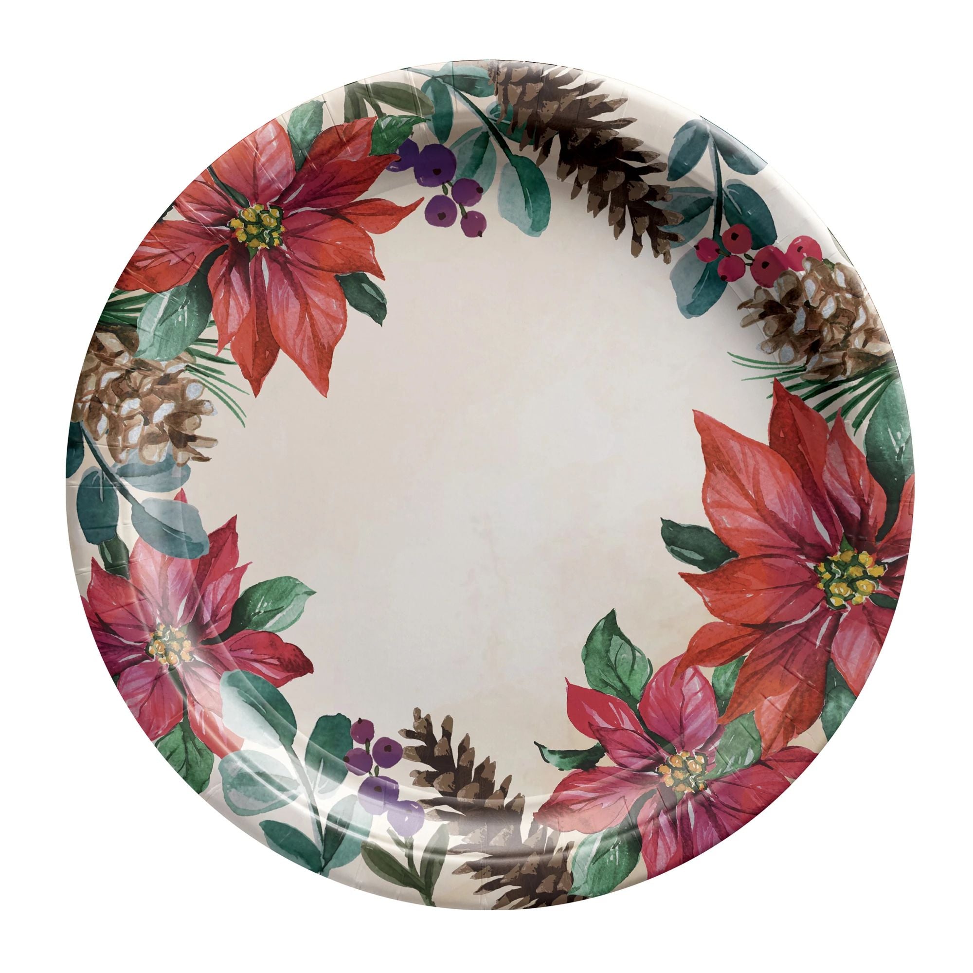 Deck the table with festive flair! These Traditional Poinsettia 9" paper plates bring holiday charm to your gatherings. With eight plates in each pack, you'll have plenty for appetizers, desserts, or main courses at your seasonal celebration. The classic poinsettia design adds a touch of yuletide elegance without the cleanup hassle. Perfect for parties, dinners, and holiday get-togethers where style meets convenience.