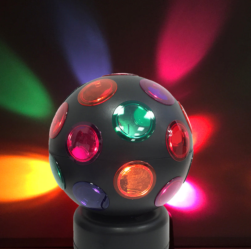 Mesmerize your crowd with the flair this Giant Disco Ball by VEI brings to the table. This well-rounded, futuristic mirrorball is a 360 rotating lighting fixture with concise beams of red, green, blue, white, yellow, and purple lights that shine through the lenses. It produces 34 crisp, bright beams that create an array of star-like visuals that can be projected onto walls, ceilings, and floors. The VEI Giant Disco Ball automatically changes directions when touched adding an extra element of excitement to the party! Measuring approximately 8'' x 10.6'', this accessory is a perfect size for hard to reach places, ceilings, and counter tops. Turn any party into one heck of a light show with the Giant Disco ball by VEI this year! A 25 Watt bulb is required and not included in packaging. The Visual Effects Giant Rotating Disco Ball Party Light is style #V-0207. VEI V0207