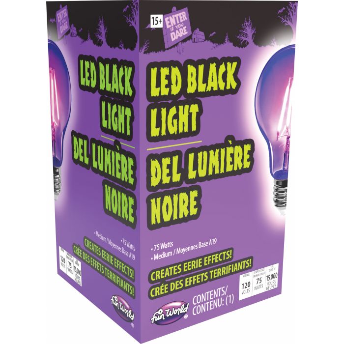 Light up any room with a touch of mystery and intrigue with our LED Black Light Bulb. Perfect for parties or creating a unique ambiance, this energy-efficient bulb delivers a deep, purple glow that will turn any white surface into a blacklight. (No need to secretly switch out bulbs for that glow in the dark party. We've got you covered.)
