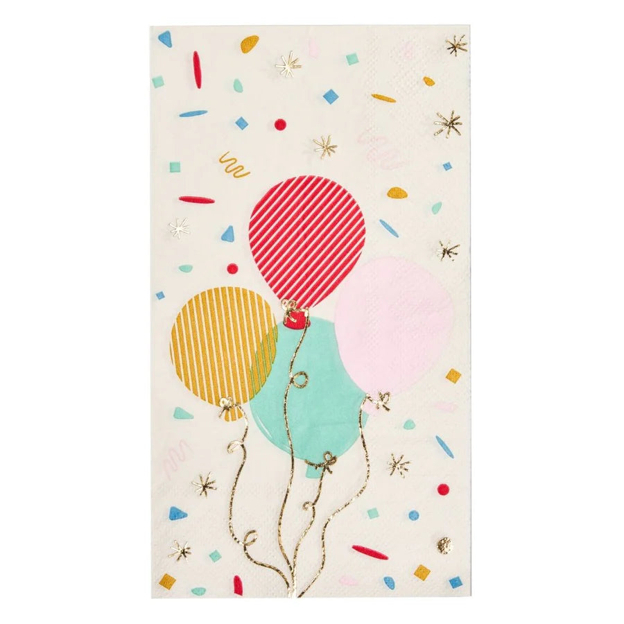 Welcome guests in style with these Guest Towel napkins! This 20-pack of 3-ply paper napkins (4.5" x 8" folded) features cheerful multi-color balloons and confetti accented with gold trim. Perfect for dinner tables or powder room displays, they add a festive touch wherever you place them. Coordinate with our matching paper tableware, Bella plastic cutlery, baking cups, and party picks to create a unified celebration that feels both fun and refined.