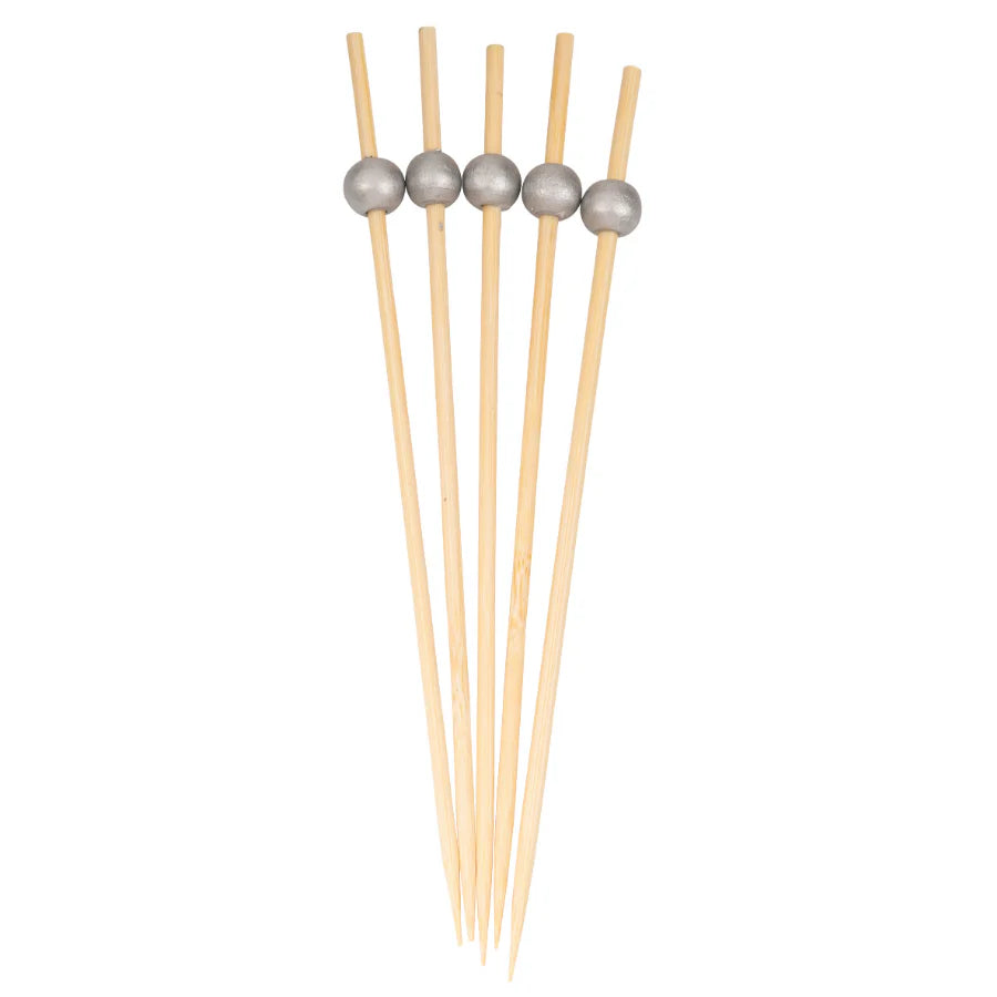 Stick it to your appetizers with style! These silver 6-inch wood party picks bring a touch of sparkle to every bite-sized treat. Perfect for cheese cubes, olives, shrimp, or whatever delicious morsels you're serving up. With 30 picks in each pack, you'll have plenty to keep the party going. Elegant enough for fancy gatherings, fun enough for casual celebrations. Make every appetizer moment memorable!