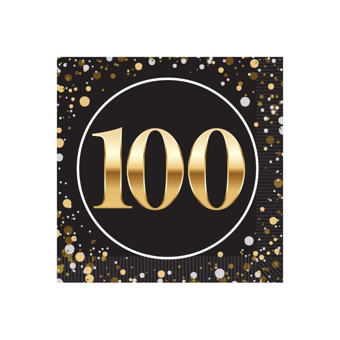Celebrate a century of memories with these festive 100th Birthday Beverage Napkins! Each pack contains 16 two-ply paper napkins, perfect for keeping drinks and hands clean during the big celebration. Durable and absorbent, these napkins add a fun, themed touch to any centennial party. Whether you're hosting an intimate gathering or a grand bash, these napkins keep the celebration mess-free and memorable. Make the milestone moment even more special!
