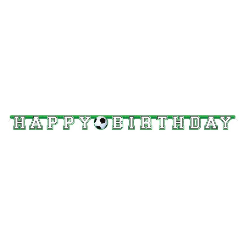 Make your next Birthday event a goal with this 3D Soccer Jointed Banner. This 3D Soccer Jointed Banner features the phrase "Happy Birthday" in bold, white lettering with a 3D soccer ball in between for the included number stickers.