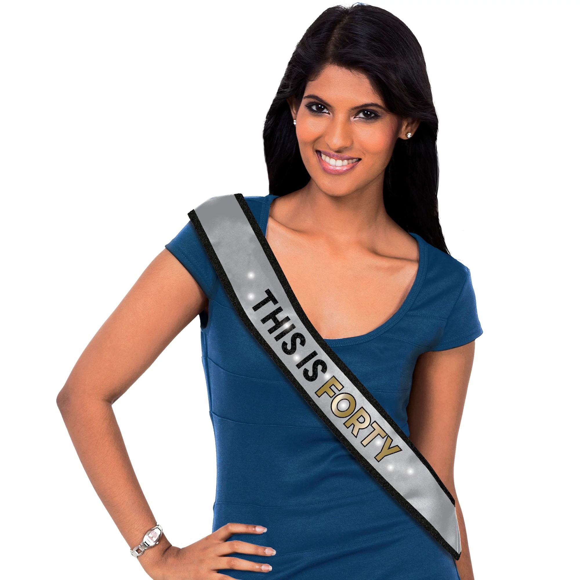 Light up the milestone! This vibrant 40th celebration sash features dazzling LED lights that sparkle and shine, making the birthday star impossible to miss. Perfect for parties, photo ops, and creating unforgettable memories, this eye-catching accessory adds instant festive flair to any 40th birthday bash. Comfortable to wear and guaranteed to get laughs and compliments all night long!