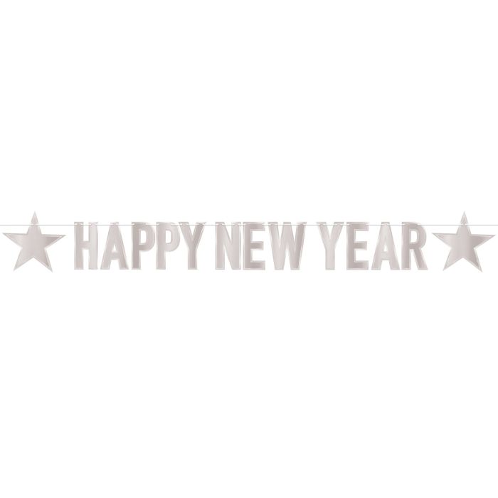 Ring in the new year with style! This shimmering silver foil streamer features bold "Happy New Year" lettering that catches the light beautifully. Measuring 8½" wide by 7 feet long, it's the perfect size for doorways, walls, or party backdrops. Simple assembly required—just unfold and hang to instantly elevate your celebration. Add it to your décor for a festive touch that'll make your New Year's bash unforgettable!