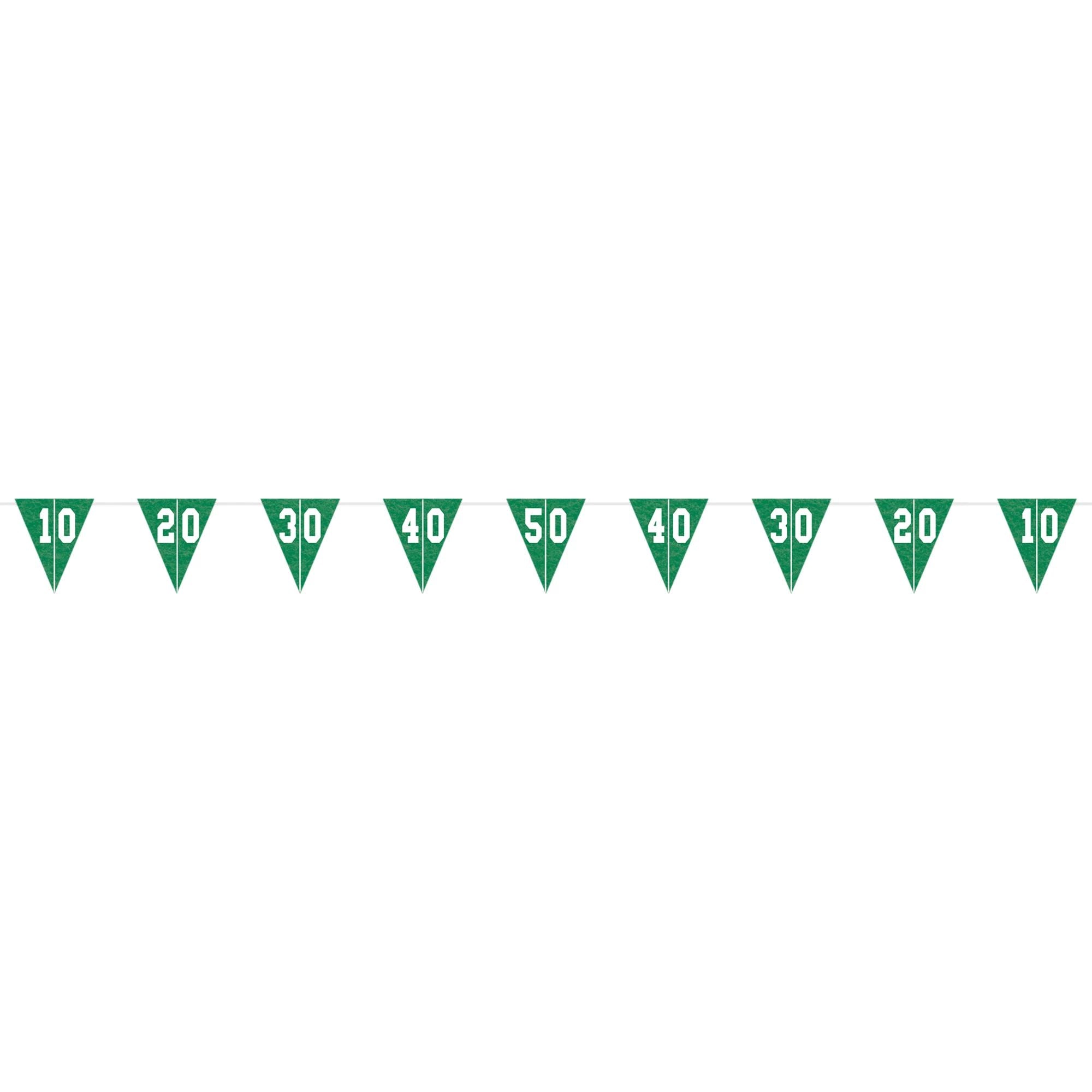 Deck out your space with this Football Pennant Banner—a 12-foot ribbon of pure gridiron glory! Featuring nine felt pennants, each measuring 10 1/4" high by 8 3/4" wide, this banner brings authentic football flair to game rooms, parties, and fan caves. The premium felt construction ensures durability through countless seasons, while the ribbon attachment makes hanging a breeze. Whether you're setting the scene for a Super Bowl bash, decorating a sports bar, or showing off your team loyalty year-round, this banner scores major style points. It's the perfect way to transform any space into a football fan's dream!