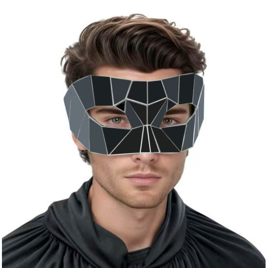 Give your costume a sharp new vibe with the Polygon Black Mirror Mask. Its sleek, angular design adds a modern twist that’s perfect for Halloween, superhero outfits, or any futuristic party. Stand out and celebrate in style with this bold, eye-catching accessory!